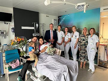De blije moeders Ziara en Sarith namen samen met het broertje van Philou de cadeaus en felicitaties in ontvangst. Ze bedankten het team voor de zorg. “Het zijn vriendelijke, goede en kundige mensen. De sfeer in het Geboortecentrum is erg fijn.” vertelt Ziara.