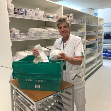 Op de foto: een collega van de apotheek in actie.