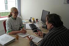 Eerste of tweede ochtend, na ontbijt, de mevrouw op bezoek die met mij kwam praten en mij kwam testen.