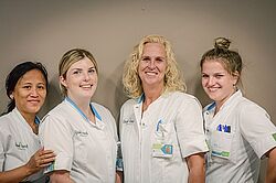 Wij hebben vier oncologieverpleegkundigen. Vlnr. Alice Setrosentono, Evelien Mastwijk-Joling, Wil Pool en Melanie Havelaar