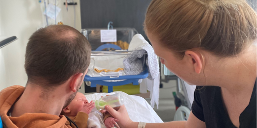 “Het was voor hem geen pretje. Tijdens de bevalling zag hij dat ik veel pijn had en het was heftig om te zien dat Bram aan het zuurstof moest. Hij voelde zich machteloos, maar waardeerde het enorm dat hij bij alles werd betrokken. Er was ruimte voor vragen en bij de keizersnede is duidelijk uitgelegd wat er zou gebeuren en wat er van hem werd verwacht. Het was ook echt fijn dat we als gezin niet gescheiden werden: zo kon hij met mij mee-eten, douchen en slapen op de kamer. Dat gaf ons echt het gevoel dat we het samen hebben gedaan.”